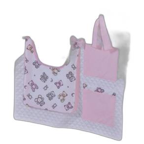 Porta Treco e Fralda Organizador Quarto de Bebê Menino Menina 1 Peça Com Laço Cor: Urso rosa O porta fraldas é ideal pra ter sempre a mão os produtos mais no dia a dia com seu bebê. Nosso porta fralda/treco tem 2 bolsos menores, onde podem ser colocados produtos pequenos, e 1 bolso maior pra colocar as fraldas, roupas, toalhas ou itens maiores. Praticidade e decoração em um só produto. Sugestão de uso: Pendurado em varão ou no berço Contém na embalagem: 1 porta fraldas Medidas: 64cm larg x 54cm alt - 1 bolso 37cm alt x 27cm larg x 5cm prof - 2 bolsos 21cm alt x 18cm larg Composição: Matelado de microfibra 100% poliéster Tecido estampado e liso percal 180 fios 100% algodão - Foto ilustrativa, tonalidade da cor pode variar um pouco no produto real Produtos fabricados em Ibitinga-SP, a Capital Nacional do Bordado e do Enxoval. Marca: Não Informado