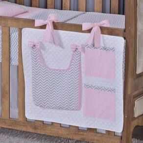 Porta Treco e Fralda Organizador Quarto de Bebê Menino Menina 1 Peça Com Laço Cor: Chevron rosa O porta fraldas é ideal pra ter sempre a mão os produtos mais no dia a dia com seu bebê. Nosso porta fralda/treco tem 2 bolsos menores, onde podem ser colocados produtos pequenos, e 1 bolso maior pra colocar as fraldas, roupas, toalhas ou itens maiores. Praticidade e decoração em um só produto. Sugestão de uso: Pendurado em varão ou no berço Contém na embalagem: 1 porta fraldas Medidas: 64cm larg x 54cm alt - 1 bolso 37cm alt x 27cm larg x 5cm prof - 2 bolsos 21cm alt x 18cm larg Composição: Matelado de microfibra 100% poliéster Tecido estampado e liso percal 180 fios 100% algodão - Foto ilustrativa, tonalidade da cor pode variar um pouco no produto real Produtos fabricados em Ibitinga-SP, a Capital Nacional do Bordado e do Enxoval. Marca: Não Informado