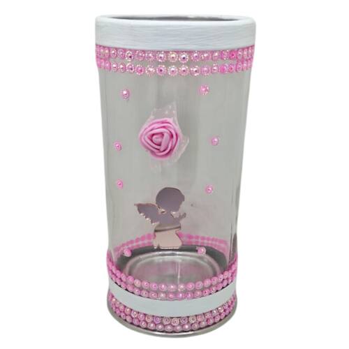 Porta Vela 7 Dias 18 cm Anjo da Guarda Vidro e Alumínio