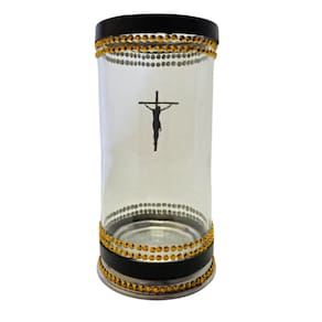 Porta Vela 7 Dias 18 cm Jesus Cristo Cruz Vidro e Alumínio