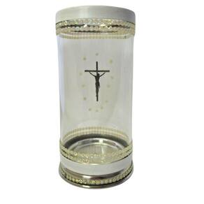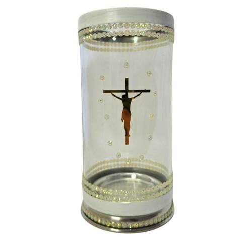 Porta Vela 7 Dias 18 cm Jesus Cristo Cruz Vidro e Alumínio Porta Vela 7 Dias 18 cm Jesus Cristo Cruz Vidro e Alumínio