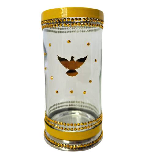 Porta Vela 7 Dias 18 cm Divino Espírito Santo Vidro e Alumínio