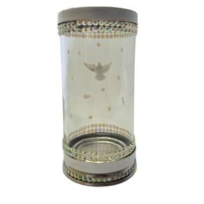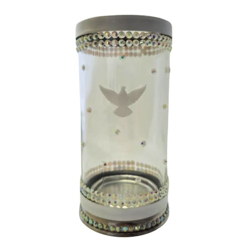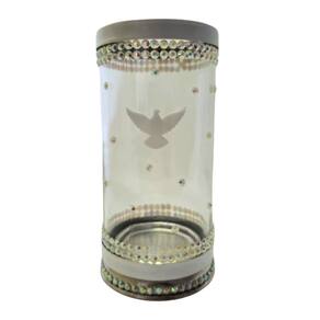 Porta Vela 7 Dias 18 cm Divino Espírito Santo Vidro e Alumínio