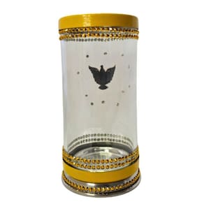 Porta Vela 7 Dias Divino Espírito Santo Vidro Alumínio 18 cm Porta Vela 7 Dias 18 cm Divino Espírito Santo Vidro e Alumínio