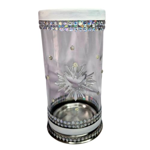 Porta Vela 7 Dias Divino Espírito Santo Vidro + Presente