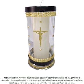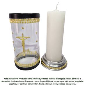 Porta Vela 7 Dias 18 cm Jesus Cristo Cruz Vidro e Alumínio