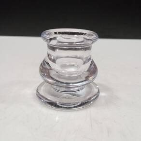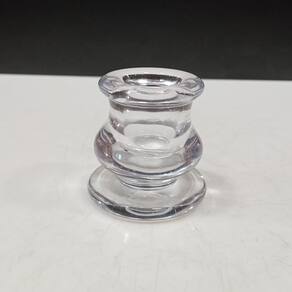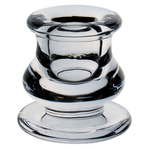 CASTIÇAL Altura: 5 cm Largura: 5,1 cm Profundidade: 5,1 cm Peso: 0,13 Kg Diâmetro da Base: 5,1 cm Diâmetro do Topo: 2,4 cm Material: Vidro Cor: Transparente