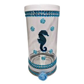 Porta Vela Iemanjá Mar Vidro e Alumínio 18 cm
