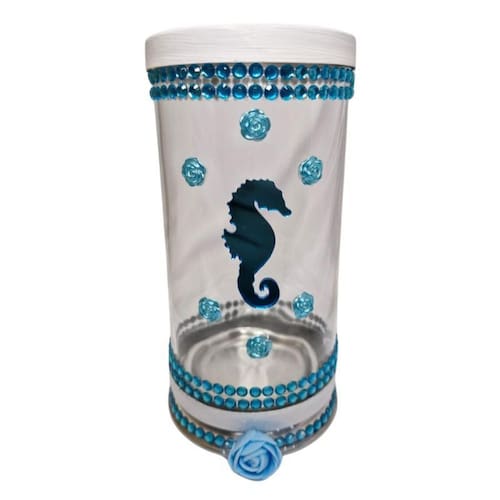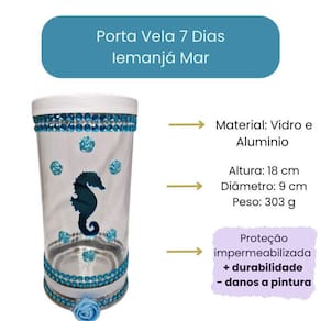 O Suporte de Vela Iemanjá da Bialluz é feito de alumínio e vidro, sendo ideal para uma vela de 7 dias. Por ser um castiçal com material antichamas, você tem maior segurança ao acender suas velas. Esse lindo presente é delicadamente decorado de forma artesanal para garantir a elegância e qualidade de cada peça. Com detalhes luxuosos que brilham e cores vivas que deixam o vaso ainda mais maravilhoso. É um excelente presente para valorizar a decoração do seu ambiente.
