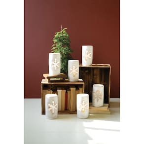 Luminaría de copo de nieve hecha de arcilla blanca.