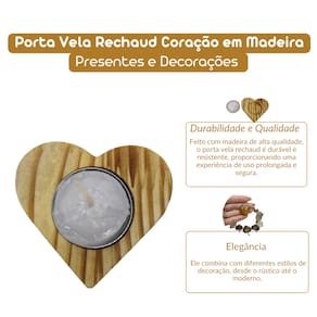 Este delicado porta vela rechaud em formato de coração, feito em madeira, é a escolha perfeita para quem busca um toque de sofisticação e aconchego na decoração. Com design encantador e calor natural da madeira, ele cria uma atmosfera acolhedora e romântica, ideal para iluminar qualquer ambiente com elegância e charme.