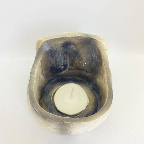 Porta Velas Crânio Patinado Marfim em Resina 10 Cm