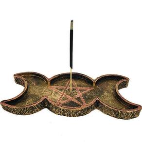 Porta velas eclipse 13575 manxs, imagine só essa belezura como parte do seu altar e seus rituais. Nosso castiçal possui o formato da triluna simbolizando as fases da lua muito utilizada pelos adoradores da deusa hécate, wiccanos e bruxos em geral, além do pentagrama, simbolizando os quatro elementos e o espírito, a terra e um portal de conexão com o sagrado. Ideal tanto para velas de 7 dias quanto de qualquer tamanho menor. Porta velas lua tripla, em resina, que aguenta calor e permite o descolamento da cera após a queima. Porta velas que pode ser utilizado em altar ou como bandeja ou ainda como incensário. Pode também ser utilizado como porta jóias ou como enfeite. Este porta velas serve também como uma decoração para o seu cantinho, no centro você coloca a vela e junto, nas laterais, você coloca as suas pedras e cristais preferidos. Tamanho 15cm x 7cm
