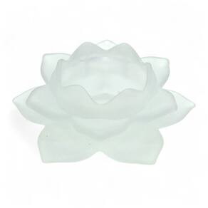 Lindo porta velas de vidro modelo flor de lótus, para colocar em superfícies. Um enfeite que propõe ao ambiente mais estilo e sofisticação. Seja na sala de estar ou varanda, este item de excelente qualidade é uma ótima escolha para compor a sua decoração.