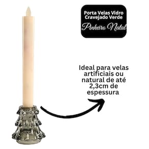 Sua tonalidade verde musgo e acabamento cravejado criam um lindo jogo de luz quando utilizado com vela acesa, proporcionando um efeito visual aconchegante e festivo. Ideal tanto para velas artificiais quanto naturais de até 2,3cm de espessura.