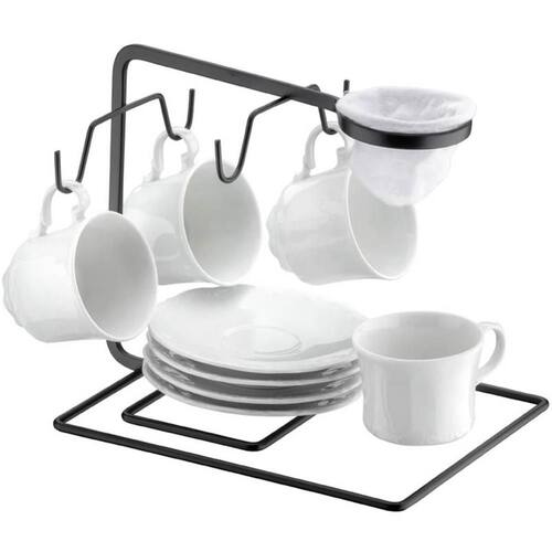Porta Xícara de Café e Chá Aramado Schmitt com Suporte para Coador Aço Carbono Preto Fosco.