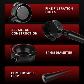 - ?Cesta de filtro incluída?Vem com um cesto universal de filtro de precisão de aço inoxidável de 54 mm, equipado com 648 furos de 0,3 mm de diâmetro na parte inferior. Garante uma extração uniforme enquanto reduz o escoamento de pó fino para um sabor de café mais limpo. (A quantidade recomendada de pó é de 15 g)