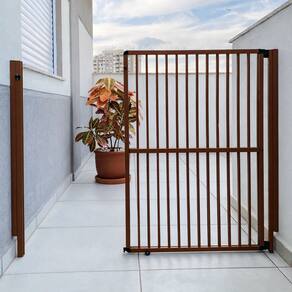 Portão de segurança - Alumínio - 100 cm x 108 a 200 cm - Marrom