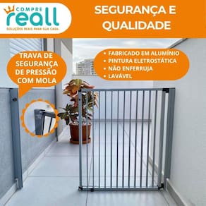 Portão de segurança Crianças e PET Altura 85cm x Largura 58 a 100cm Alumínio Cinza