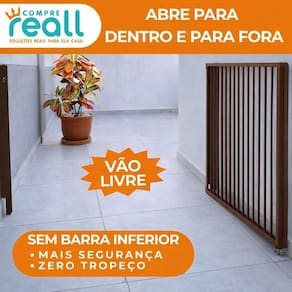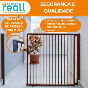 Portão de segurança Crianças e PET Altura 85cm x Largura 58 a 100cm Alumínio Marrom