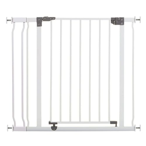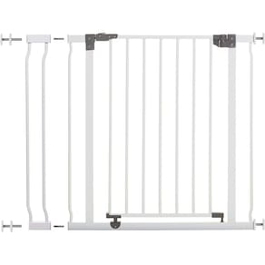 Dreambaby Conjunto de portão de segurança Liberty Walk Thru Baby – com painel de extensão de 8,9 cm – serve para aberturas de 74,5 – 92,7 cm – portões de segurança montados sob pressão – Branco