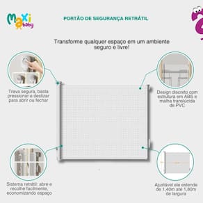 Portão de Segurança Infantil Retrátil em ABS e PVC Maxi Baby Manter a casa segura para os pequenos é sempre uma prioridade para qualquer família. E, quando o bebê começa a engatinhar e explorar cada cantinho, garantir ambientes protegidos se torna ainda mais essencial. Pensando nisso, o Portão de Segurança Retrátil da Maxi Baby foi desenvolvido para oferecer tranquilidade aos pais e liberdade com segurança para os bebês. O portão cria uma barreira eficaz em locais estratégicos da casa, como escadas, corredores, portas e outros ambientes internos que exigem restrição de acesso. Seu sistema retrátil permite que o portão seja recolhido com facilidade quando não está em uso. Fabricado com materiais de alta durabilidade, ele combina uma estrutura robusta em ABS resistente com uma malha de PVC translúcida, proporcionando não somente proteção, mas também visibilidade e leveza visual ao ambiente. A instalação é simples e acompanha um kit completo com suporte de fixação, parafusos e manual, permitindo montagem rápida mesmo para quem não tem experiência com instalação. Além de proteger bebês em fase de desenvolvimento, o portão retrátil também é eficiente para manter pets ou crianças maiores afastadas de áreas potencialmente perigosas. Seu design neutro e discreto se adapta facilmente a qualquer ambiente, sendo funcional sem comprometer a estética da casa. Ideal para quem busca praticidade, segurança e versatilidade em um só produto, o Portão de Segurança Retrátil da Maxi Baby torna o ambiente doméstico mais protegido e confortável para toda a família. Principais Características: - Indicado para crianças a partir de 6 meses - Ideal para uso em escadas, corredores, portas e ambientes internos - Sistema retrátil: recolhe facilmente e economiza espaço - Estrutura em ABS resistente com malha translúcida de PVC - Design moderno e discreto, adaptável a qualquer ambiente - Fácil instalação, acompanha kit de perfuração para instalação segura - Segurança, praticidade e versatilidade no dia a dia - Fácil de abrir, fechar e instalar - Também pode ser para conter pets Especificações Técnicas: - Conteúdo da Embalagem: 1 Portão Retrátil + Kit de Instalação e Manual de Instruções. - Dimensões do Produto AxLxP : 96,3 x 5,5 x 180,0cm aprox - Composição/Material: Estrutura em ABS e malha de PVC - Peso do Produto: 1,425kgs - : 90 dias Contra Defeitos de Fabricação Pelo Fabricante - Código do Fabricante: 21589 - EAN: 7899403218593 - Marca: Maxi Baby Imagens Meramente Ilustrativas. As cores e estampas podem variar de acordo com o lote do fabricante.