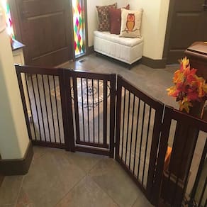 Descrição: Crie um ambiente seguro para seus adoráveis animais de estimação! Nosso portão independente para animais de estimação inclui 4 painéis e possui rotação livre de 360 graus, permitindo que você o configure em várias configurações, como forma de Z, em forma de U, reto ou em L para se ajustar a qualquer layout de cômodo. Feito com madeira de pinho 100% natural, este portão não apenas adiciona um toque de elegância à sua decoração de interiores, mas também garante segurança e saúde. Mais do que isso, a adição de kits anti-ponta e laços de zíper permite uma instalação segura em paredes ou escadas, garantindo que o portão permaneça estável mesmo com os animais de estimação mais brincalhões ao redor. Quando não estiver em uso, o portão se dobra rapidamente para facilitar o armazenamento sem ocupar muito espaço. Seja para manter itens protegidos, isolamento de animais de estimação, longe de áreas perigosas ou evitar danos aos móveis, nossa barreira de madeira para animais de estimação pode ser a escolha perfeita! Características: Feita de madeira de pinho maciça, garante excelente robustez e estabilidade. Com tratamento de polimento delicado, garante uma superfície de madeira sem lascas Com painéis rotativos flexíveis, configurados em diferentes formas para atender a diferentes necessidades Fácil de dobrar em um tamanho plano para economizar espaço quando não estiver em uso Com kits antiqueda e laços de zíper para fixação, não é fácil de balançar As lacunas estreitas entre as barras de madeira impedem que qualquer animal de estimação se esprema A porta trancável permite fácil acesso enquanto evita que os cães escapem As almofadas antiderrapantes são projetadas para proteger seu chão de arranhões. Adequado para cães pequenos/médios/grandes, fornece uma área fechada segura Especificações: Cor: marrom cereja escuro/branco Material: madeira de pinheiro Tamanho de cada painel: 50 cm x 76 cm (C x A) Comprimento expansível: 203 cm Peso líquido: 7,5 kg A embalagem inclui: 1 portão de madeira para cães com 4 painéis. 1 manual do utilizador (idioma português não garantido) - ?Ajuste de forma flexível?: Com dobradiças ajustáveis, cada painel pode girar 360 graus, permitindo que você configure o portão sem esforço em várias formas, como forma de Z, forma de U, linha reta ou em forma de L. Você também pode adicionar painéis extras para acomodar suas necessidades específicas de layout. - ?Excelente estabilidade e segurança?: o pacote inclui kits antiqueda para montar com segurança o portão na parede, bem como laços de zíper para fixar os painéis às escadas, garantindo maior estabilidade. Uma porta trancável evita fugas, enquanto lacunas estreitas entre as barras de madeira impedem que patas e cabeças fiquem presas. - ?Design dobrável que economiza espaço?: quando não estiver em uso, os painéis podem ser facilmente dobrados para armazenamento compacto. O portão para animais de estimação inclui 4 painéis, cada um medindo 51 cm x 76 cm (C x A), com um comprimento total de 203 cm quando totalmente estendido. - ?Material de madeira durável?: o portão para animais de estimação é feito de madeira de pinho 100% natural, revestido com tinta segura, garantindo robustez excepcional e durabilidade duradoura. Além disso, a superfície da madeira é meticulosamente polida, proporcionando um acabamento suave e sem lascas. - ?Aplicação versátil?: se você precisa proteger áreas específicas, criar limites, manter animais de estimação longe de zonas perigosas ou evitar danos aos móveis, este portão para animais de estimação foi projetado para atender às suas diversas necessidades. É ideal para varandas, portas, corredores, quartos, cozinhas, escadas e muito mais.