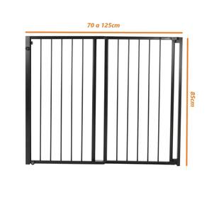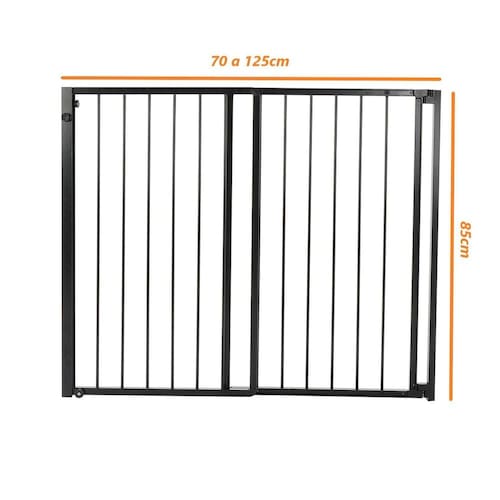 Possui 85 cm de altura e largura regulável, variando de 70 cm até 125 cm sem precisar de extensor além disso, o portão de correr reall articula 180º, ou seja, abre tanto para dentro como para fora. E o melhor: o vão é livre diferente de outros produtos no mercado, que possuem uma barra na parte inferior, o portão de correr reall tem um design exclusivo, garantindo maior segurança para sua família pois não há risco de tropeçar.