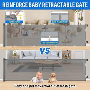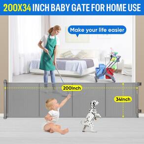 Pacote: 1 portão retrátil para bebês (branco) 2 suportes, 2 travas, 8 parafusos, 8 parafusos expansíveis, 1 manual de instalação e 4 kits fixos no chão - ?Largura extra de 500 polegadas?Este portão para bebês pode se estender até 500 cm de largura e tem 86 cm de altura, pode ser facilmente instalado no topo e na parte inferior das escadas, para portas, corredores, cozinha, sala de estar, uso interno, interno e externo, tornando o ambiente de brincadeiras do bebê mais seguro. Provando uma vida diária harmoniosa para bebês e animais de estimação. - ?Fácil operação com uma mão?A forma como este portão pode ser aberto e fechado facilmente com uma mão, torna sua vida diária mais conveniente e adorável, a parte inferior do portão do bebê é flexível para instalar exatamente o que você queria. Basta girar o interruptor para desbloquear ou travar, o funcionamento suave do portão fará com que você manuseie facilmente quando tiver o bebê em suas mãos. - Tiras de reforço embutidas: o novo design para portão retrátil extra largo para bebês é que incorporamos algumas tiras na malha para tornar o portão de malha mais estável e não é tão macio para rastejar e gancho fixo extra no chão, para impedir que os cães rastejem pelo portão! - ?Estrutura macia e durável?Este portão de bebê é feito de material de PVC, é de material ecológico e não tem cheiro, projetado pela malha forte e macia para evitar que seu bebê se machuque quando ele acidentalmente bater na porta, e é fácil de limpar e lavar, é durável e tem um longo tempo de uso, não será quebrado tão facilmente. A lista de peças deste portão também é durável, parafusos de hardware e parafusos expansivos. - ?Fácil de instalar? Forneça todos os detalhes do manual de instalação, ele facilitará a instalação deste portão, mesmo que você não esteja familiarizado com esse tipo de coisa (nunca use com uma criança capaz de escalar ou desalojar abrir o portão ou o gabinete)