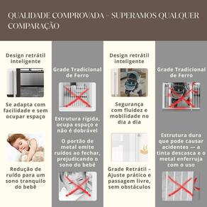 Portão Retrátil Sem Perfuração Para Bebês E Pets Segurança Cor: Branco Garanta a segurança dos pequenos e dos pets com a nossa Grade Retrátil Inteligente, desenvolvida para proporcionar proteção, praticidade e design moderno em um único produto. Ideal para portas, corredores e escadas, ela conta com estrutura leve, retrátil e silenciosa - perfeita para o dia a dia. Principais Benefícios: Medidas ajustáveis: 86 cm de altura até 140 cm de largura. Trava dupla de segurança: Impede o acesso de crianças e permite fácil abertura por adultos. Silenciosa: Evita ruídos ao fechar, protegendo o sono do bebê. Rotação 180: Pode ser aberta para ambos os lados. Instalação versátil: Com ou sem perfuração inclui kit adesivo . Ajuste de altura: Ideal para ambientes com rodapé. Material seguro: Tela em ABS ecológico, sem odor e atóxica. Eixo de metal tensionado: Alta durabilidade e resistência. Acompanha: 2 Suportes Superiores + 2 Suportes Inferiores 4 Âncoras + Pinos completos 8 Adesivos Tipo A e B 1 Kit de Instalação Adesiva Disponível nas cores: Branco Cinza Preto do vendedor: 3 meses Marca: Não Informado Ean: 7900454360930