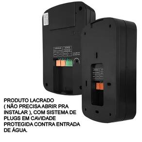 - Não entra água, pode ser instalado com ou sem capa de chuva, não ESTRAGA com o SOL, feito em ABS super RESISTENTE. - Botão para acionamento de fechadura, pode ser usado com ou sem fechadura elétrica - Aceita até mais 2 extensões, você pode ter 3 pontos de atendimento dentro da sua casa ou empresa, muito mais comodidade, muito útil para pessoas que tem 2 casas no mesmo terreno.