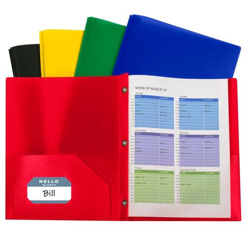 C-Line Portfólio de poliéster pesado com dois bolsos com garras, para papéis tamanho carta, inclui compartimento para cartão de visita, cores diversas, pacote com 10 (32960)