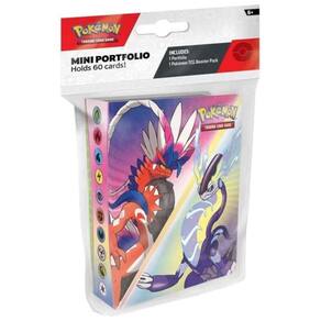O Mini Portfolio Pokémon TCG Scarlet & Violet é um álbum compacto para armazenamento de cartas colecionáveis da expansão Scarlet & Violet em formato portátil. A estrutura em capa flexível com páginas internas plásticas permite guardar até 60 cartas padrão, sendo adequado para transporte de uma seleção das cartas mais utilizadas ou favoritas.