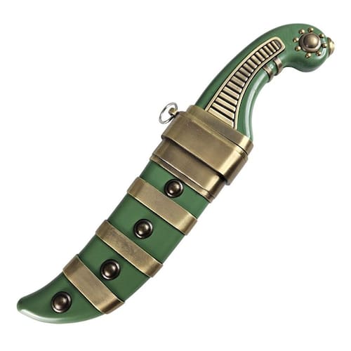 inspirada no personagem Portgas D. Ace do anime One Piece, desenvolvida para colecionadores e fãs . A peça possui visual fiel ao modelo temático, com acabamento detalhado e design marcante. quanto a bainha também são em aço 440 , garantindo resistência estrutural e durabilidade do material. Trata-se de uma sem fio de corte, indicada exclusivamente para fins decorativos, coleção ou cosplay. Informações Técnicas Material da : Aço 440 Material da bainha: Aço 440 Comprimento total: 39 cm Comprimento da lâmina: 23 cm Largura da lâmina: 6 cm Comprimento da empunhadura: 15,5 cm Comprimento da bainha: 23,5 cm Largura da bainha: 8 cm Peso aproximado: 1,103 kg Uso e Cuidados Produto sem fio de corte. Evitar quedas, impactos Evitar contato com umidade para preservar o acabamento. Realizar a limpeza com pano seco e manter armazenado em local seguro.