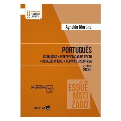 “Para a Língua Portuguesa, tivemos a honra de contar com o precioso trabalho de Agnaldo Martino, que soube, com maestria, aplicar a metodologia ‘Esquematizado’ à sua vasta e reconhecida experiência profissional. Agnaldo é licenciado em Letras (Português, Inglês e Literatura), mestre e doutor em Língua Portuguesa pela PUC-SP e festejado professor de Gramática, Interpretação de Texto, Redação Oficial e Redação Discursiva, tendo começado a lecionar em 1987.” Pedro Lenza ?