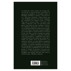 Com um método comparativo, a obra introduz uma variedade de temas como a sociedade civil, o Estado, as liberdades coletivas e individuais, as convulsões sociais, o debate indenitário, entre outros, em que são descortinadas as simetrias e divergências entre esses autores. Para impulsionar novas leituras sobre o positivismo e o marxismo, os temas são compreendidos não somente sob a égide de um estudo comparado dessas filosofias, mas também pela constatação da contemporaneidade de Comte e de Marx. Leitura indispensável para novas compreensões desses pensadores.