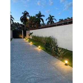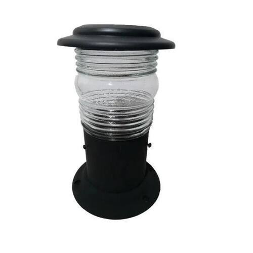 Especificações Técnicas: Tamanho: 25cm de altura total; Base: 15,5cm de diâmetro; Lente/vidro: 11cm; Fixação contem 3 furações para fixar a base no solo; Cor: Preto. Base e Chapéu injetado em material termoplástico de alta resistência; Lente em Vidro. Potência máxima: 60W Tensão máxima: 220V Soquete: Porcelana Bocal E27 Corpo do Poste: PVC tratado de alta qualidade. Para Lâmpada: Eletrônica ou LED Copo: Vidro de alta resistência OBS: não acompanha lâmpada