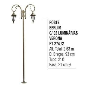 -01 Poste Berlim Jardim de Alumínio 02 Luminárias Verona 2,63m