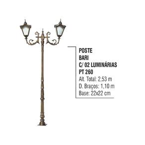 01 Poste Colonial Bari Para Jardim Alumínio 02 Luminária 2,53m