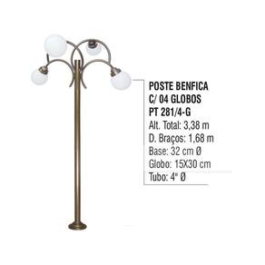 Poste Colonial Benfica Para Jardim Alumínio 04 Globos 3,38m