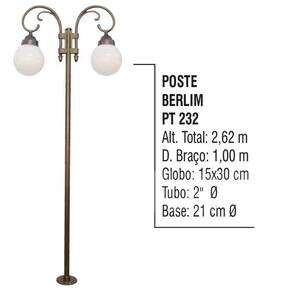 Poste Colonial Berlim Para Jardim Alumínio 02 Globo 2,62m