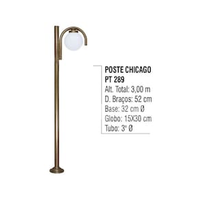 01 Poste Colonial Chicago Para Jardim Alumínio 01 Globo 3,00m