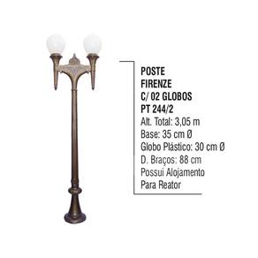 Poste Colonial Firenze P/ Jardim de Alumínio 02 Globo 3,05m