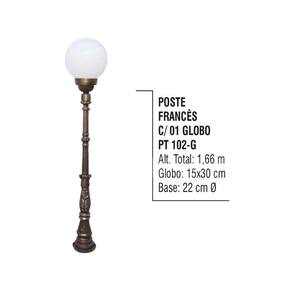 01 Poste Colonial Francês Jardim de Alumínio 01 Globo 1,66m