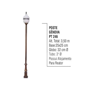 01 Poste Colonial Gênova Para Jardim de Alumínio 3,50m