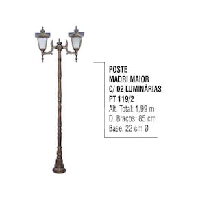 Poste Colonial Madri Para Jardim Alumínio 02 Luminária 1,71m
