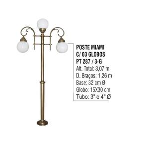 Poste Colonial Miami Para Jardim de Alumínio 03 Globos 3,07m