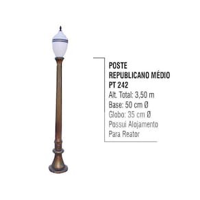 Poste Colonial Republicano Jardim de Alumínio 01 Globo 3,50m