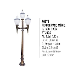 01 Poste Colonial Republicano Jardim de Alumínio 03 Globo 4,13m