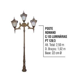 Poste Colonial Romano Jardim de Alumínio 03 Luminária 2,50m